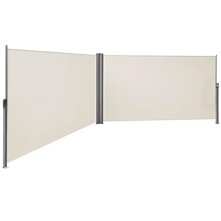 Seitenmarkise mit TÜV-Zertifikat - Unsere Doppel-Seitenmarkise wurde vom TÜV SÜD zertifiziert. Vertrauen Sie auf das Prüfzeichen und die hochwertige Qualität und Verarbeitung von SONGMICS Elegantes Seitenrollo - Nutzen Sie den UV-beständigen Seitenschutz für Balkon, Garten und Terrasse. Er dient als Sichtschutz, Sonnenschutz und auch leichten Wind kann die Markise abhalten Hochwertige Materialien - Markisenkasten sowie Pfosten aus wetterfestem Qualitätsaluminium, lackiert nach Oxidationsbehandlung, rostfrei. Wasserabweisende PU-Beschichtung und reißfestes Polyester (280 g/m) für robusten Markisenstoff Ausziehbare Doppelseitenmarkise - Das Seitenrollo ist doppelt ausziehbar, so können Sie eine Seite nutzen oder beide zusammen, und gerade oder über Eck. Gesamtlänge beträgt 6 Meter, je Seite 3 Meter (inkl. Markisenkasten und -pfosten) Einfache Nutzung - Jede Seite kann separat mit Handgriffen ausgezogen werden und sicher am Pfosten befestigt werden. Dank automatischer Rückrollfunktion einfach wieder einfahrbar, und das Markisentuch ist schmutz- und staubfrei im Markisenkasten