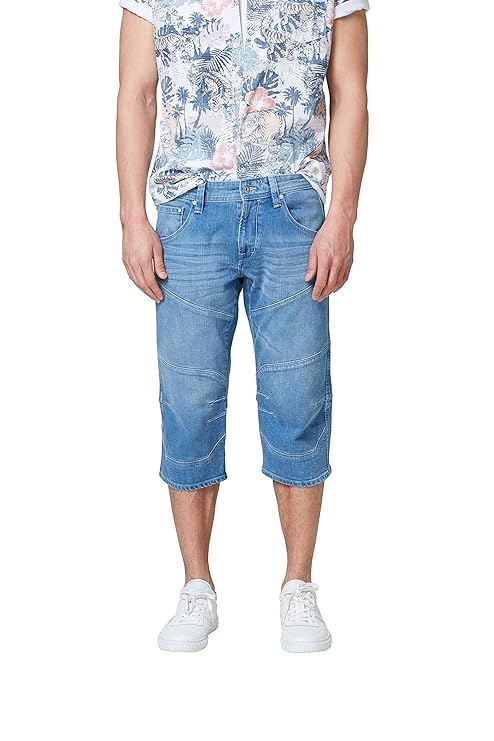 Freizeithose mit lockerer Passform: Diese Cargo-Hose für Herren im lässigen Casual-Stil ist perfekt für den stilbewussten Mann, der auch im Sommer nicht auf eine schicke Jeans verzichten möchte Lieferumfang: 1 x blaue Cargo-Capri-Jeans mit heller Waschung, 3/4 Hose für Herren von HENSON&HENSON – kostenloser Versand & Rückversand nach Deutschland und Österreich 99% Baumwolle, 1% Elasthan Capri Eine bequeme Jeans für jede Gelegenheit: Dank ihres hohen Strech-Anteils und den Abnähern im Kniebereich bietet diese kurze Hose für Männer zu jeder Zeit volle Bewegungsfreiheit – ob in der Arbeit, beim Wandern oder im Kino Cargo-Capri-Jeans mit praktischem Komfort: 2 seitliche Einschubtaschen, 2 Beuteltaschen mit Patte und Klettverschluss an den Beinen sowie 2 Gesäßtaschen bieten genug Platz für wichtige Alltagsutensilien wie Handy, Portemonnaie oder Schlüssel Immer gut angezogen: Ob kombiniert mit einem schicken Hemd oder eher sportlich mit T-Shirt – dank der leichten Used-Optik und ihrer perfekten Capri-Länge sehen Männer in dieser Jeans allzeit modern und stilbewusst gekleidet aus