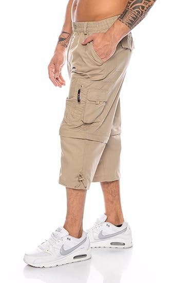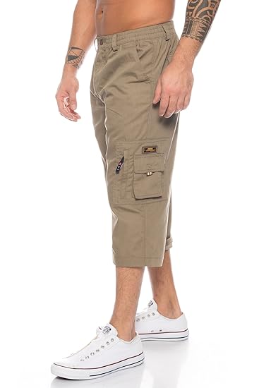 Herren Cargo Shorts – 3/4 Hose mit langen, weiten Beinen sowie großen Seiten- und Gesäßtaschen mit Klettverschluss, die viel Stauraum bieten