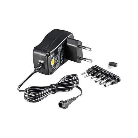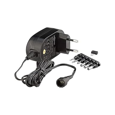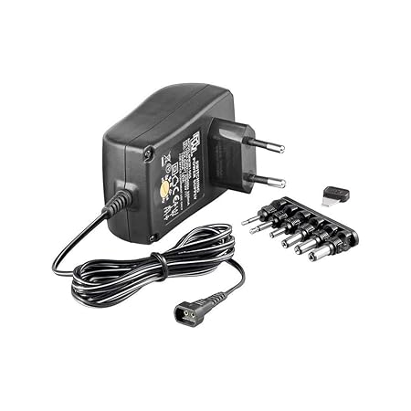 Das Universal Steckernetzteil versorgt dank der sieben mitgelieferten Adapterstecker nahezu jedes Elektrokleingerät mit Strom - dabei bietet es beste Performance und Sicherheit Um das passende Universal Netzteil auszuwählen brauchen Sie lediglich die Strom- und Spannungsabgabe Ihres Gerätes zu prüfen und dann den passenden Stecker einzusetzen Mit dem Drehschalter auf der Rückseite des Universalnetzteil ist eine Ausgangsspannung zwischen 3 und 12 Volt ganz leicht einstellbar / Netzgerät ideal für Geräte bis maximal 300mA Für jedes Gerät das passende Schaltnetzteil: Die sieben unterschiedlichen Adapterstecker sorgen für eine optimale Kontaktierung an Babyphone, CD-Player, Laptop und vielen anderen Elektrogeräten Lieferumfang: 1x Stromadapter, je 7 wechselbare DC-Schalter in verschiedenen Größen / mit Hohlstecker / Universal-Netzteil ideal für Festplatte, Notebook, Drucker, Monitor, Zubehör für Gitarren