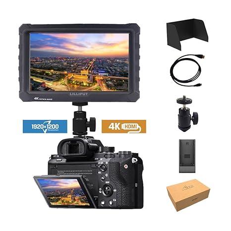 Lilliput A7S Monitor neuesten Upgrade-Set. Der Silikonschutz und der Sonnenschutz sind verbessert. Der Upgrade-Sonnenschirm ist so konzipiert, dass er umgeben und besser für Außenaufnahmen geeignet ist. Neben dem originalen HDMI-zu-Mini-HDMI-Kabel, gibt es zwei weitere Adapter im Lieferumfang für den Kunden müssen HDMI zu HDMI oder HDMI zu Micro-HDMI-Kabel mit der Kamera verwenden. 7 '16:10 8bit IPS LCD Panel mit 1920x1200 native Auflösung (324ppi), genießen schärfer, detaillierteres Bild mit reicheren Farben als je zuvor.1000: 1 hoher Kontrast.500cd / ? hohe Helligkeit und 170 ° breite Betrachtungswinkel, für hervorragendes Seherlebnis. 4K HDMI-Eingang, 3840 x 2160 P (30 / 29,97 / 25/24 / 23,98 Hz), 4096 x 2160 P (24 Hz). Unterstützung 4K HDMI-Eingang / Ausgang, Die 4K HDMI-Ausgangsfrequenz sollte unter 30Hz eingestellt werden. Zum Beispiel kann Panasonic GH4 GH5 Frequenz auf 24Hz eingestellt werden. Das HDMI-Signal kann die Ausgabe an den anderen Monitor oder das Gerät senden, wenn das HDMI-Signal an A7S gesendet wird. A7s bietet viele Hilfsfunktionen für die Aufnahme von Fotos und Filme, wie Sprechen, falsche Farbe und Audio Level Meter. 20.5mm Stärke und 320g Gewicht, die für Cameraman im Freien oder Handheld Anwendungen gut verwendbar machen. › Weitere Produktdetails