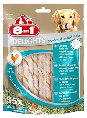 Gedrehte Stangen mit Anti-Plaque Formel Nur 2% Fett Ohne künstliche Farbstoffe und Geschmacksverstärker Perfekte Unterstützung der Zahnpflege Nach dem Patentrezept von 8in1 › Weitere Produktdetails