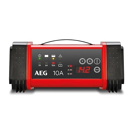 Maximaler Ladestrom: 10 A (effektiv). Alternativ reduzierter Ladestrom 2A für eine schonende Ladung kleiner Batteriekapazitäten (umschaltbar). Batterietyp: WET, Blei-Säure, GEL, EFB, AGM Batteriespannung: 6, 12 Volt, Batteriekapazität: 6 Volt: 1,5 - 6 AH, 12 Volt: 10 - 120 AH (Empfehlung: Ladevorgang 8 bis 10 Std.). Umgebungstemperatur: -20 C bis +40 C Sicherheitsmerkmale: Überladungs- und Kurzschluss- schutz sowie Überhitzungs- und Verpolungsschutz. LED Anzeige für Lademodus, Verpolung und defekter Batterie Robustes Metallgehäuse mit integriertem Tragegriff und Ladezustandsanzeige in % sowie schutzisolierte Batterieklemmen Durch Erhaltungsladefunktion (2A) ideal für Saisonfahrzeuge wie Cabrio oder Motorrad geeignet. Kein manuelles Beenden des Ladevorgangs erforderlich