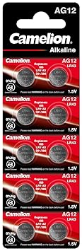 Lieferumfang:10x Alkaline Knopfzellen AG12 / LR43 / LR1142 / 386
