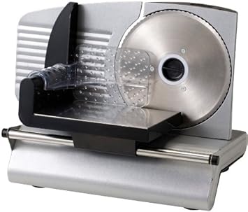 Die Aufschnittmaschine kann nicht gefrorenes Fleisch und Knochen sondern nur frischen Fleisch geschnitten werden;Nach der Reinigung können Sie eine kleine Menge Öl auf die Messereinheit sprühen, um die Schmierung mechanischer Teile zu erhöhen und eine rostfreie Rolle zu spielen Leistung: 550W;Arbeitskapazität: 250kg / Stunde;Produktmaterial: Edelstahl;Einlassgröße (Zufuhrplatte): 145 × 70 mm;Spannung: 220 V;Produktvolumen: 530 × 305 × 745 mm;Umfang: 99 cm;Produktion: 360 kg;Schnittstärke: 3mm Die Schneidemaschine ist so konstruiert, dass sie einfach sauber zu sein und sich frei drehen zu lassen. Und die Messereinheit kann leichter entfernt und gereinigt und eingestellt werden Diese Aufschnittmaschine kann effizient sein, um Rindfleisch, Schweinefleisch, Lamm und anderes Fleisch in Stücke zu schneiden. Die Oberfläche dieses geschnittenen Fleisches ist glatt und die Dicke ist gleich Diese Art von Kommerziellen Edelstahl Allesschneider eignet sich für kleine Catering-Industrie und Fleischverarbeitung, Kindergarten,im Restaurant und kleine Mensa