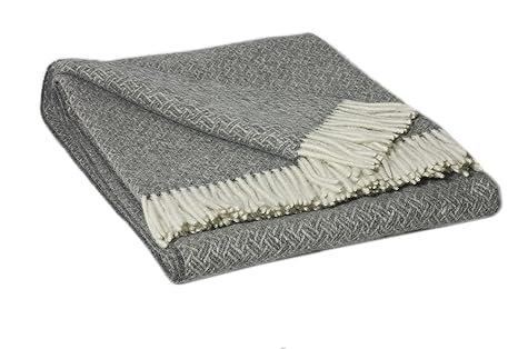 URBANARA Alpakadecke CORCOVADO - 100% reine Alpaka-und Merinowolle, Wolldecke mit Fischgratmuster und Fransen - 130 x 170 cm,