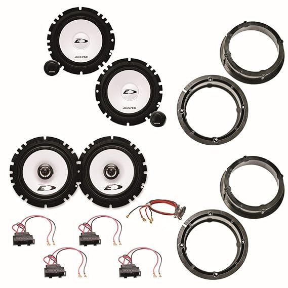 System zu 2 strasse Alpine mit 2 woofer und 2 tweeter getrennten; 2 woofer standard von 16,50 cm des diameter (6,5'); 2 tweeter zum neodimium von 3,60 cm; Spule der woofer in kapton und magnet in ferrite; Kraft rms: 45 watt (einzeln); Kraft max: 280 watt (einzeln); Kraft rms: 90 watt (zu heiraten); Kraft max: 560 watt (zu heiraten)
