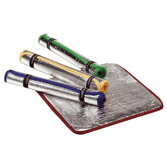 Isolierende Unterle mit alubeschichteter Oberfläche, PE-Schaumisolierung und Schutzfolie Ermöglicht die Rast auch auf Steinen, kalten oder feuchten Böden Verschönert den Aufenthalt im Stadion oder auf einsamen Parkbänken Mit 90 g durchaus tragbar 35 x 45 x 0,2 cm