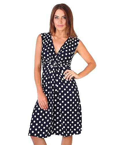 KRISP Damen Knoten Dekolleté Pünktchen Kleid