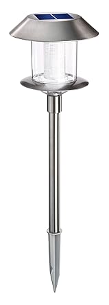 LED Solarleuchten mit Einschaltautomatik bei Dämmerung Größe: Gesamthöhe 37 cm Diese Gartenleuchten sind wetterfest und aus robustem Edelstahl Die Solarlampen haben einen An- und Ausschalter an der Unterseite Diese Solareuchten haben einen internen wiederaufladbarer Akku