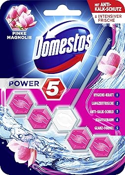 Domestos WC-Stein Power 5+ Aktiv Blauspüler Pinke Magnolie, 7er Pack(7 x 55 g)