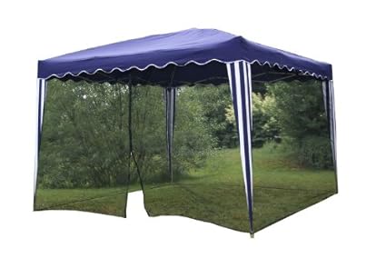 Auszeichnung GUT - Vergleich.org - Falt Pavillon - Easy Up - inkl. 4 Seitenteilen (davon 2 mit Fenster) Dachmaß: ca. 3 m x 3 m - Firsthöhe: 2,55 m Material: Stahlgestell lackiert - Wasser abweisendes Dach (nicht wasserdicht) Packmaß: 119 x 24 x 24 cm - Gewicht: 17 kg - Farbe: blau / weiß inkl. Tragetasche mit Reißverschluss, Aufbauanleitung, 4 Abspannseile und 8 Bodennägel / Heringe sind enthalten