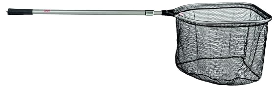 Ultrastarker, klappbarer Unterfangkescher gummiert mit einem einteiligen, massiven Aluminiumgelenk und Teleskop-Kescherstock Der Klappkescher ist teleskopierbar bis auf 2,80 m und die Bügelmaße sind 60 x 60 cm Das Netz dieses Keschers zum Angeln ist ein leichtes Gummi bzw. Rubber Coated Polyesternetz (geruchsneutral und grün) Die Maschenweite ist vom Hersteller mit 15 x 8 mm angegeben, wobei der Boden des Netzes aus einer 6 mm Masche besteht Einteiliger, klappbarer Kescherkopf aus Aluminium, superstarke, 10 mm Kescherarme und teleskopischer, verwindungssteifer Aluminium-Kescherstock