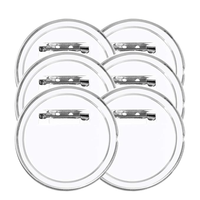 ?Selber DIY Buttons?- Hohe Transparenz, klare Bilddarstellung. Basteln Sie Ihre Buttons spielend einfach mit eigenen Texten, Fotos und Grafiken. Natürlich können Sie dafür eine eigene Design Vorlage mit einem Grafikprogramm erstellen. ?Gute Qualität und wiederverwendbar?- Das Material von Buttons Set sind Kunststoff mit Metallnadel, robust und wiederverschließbar. Die Buttonteile halten schön fest zusammen und können wieder geöffnet werden. ?Einfach und unkompliziert?- Die zwei Teile der Buttons können zur einfachen Platzierung verschiedener Bilder getrennt werden. Sie nehmen Ober- und Unterteil des Buttons, legen den Papierkreis ein und drücken die Teile mit der Hand zusammen. ?Standardgröße für Sie?- Der Ansteckbutton ist 6 x 4cm / 2,4 x 1,6 Zoll (Durchmesser und Höhe) groß, kann 5,4 x 0,02cm / 2,1 x 0,008 Zoll Foto / Papier / Logo darin einsetzen. ?Breit Verwendbar?- Transparente DIY Buttons eignen sich für Anstecker, Namensschilder, Fotobuttons, Modeaccessoires, Bastelarbeiten für Karneval-, Fasching-, Junggesellenabschiede, Geburtstage, Hochzeiten, Polterabende, Messen usw. › Weitere Produktdetails