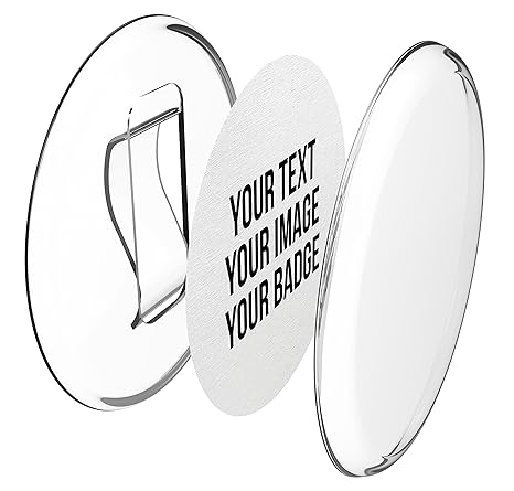 ?Standardgröße für Sie?- Der Ansteckbutton ist 6 x 4cm / 2,4 x 1,6 Zoll (Durchmesser und Höhe) groß, kann 5,4 x 0,02cm / 2,1 x 0,008 Zoll Foto / Papier / Logo darin einsetzen.