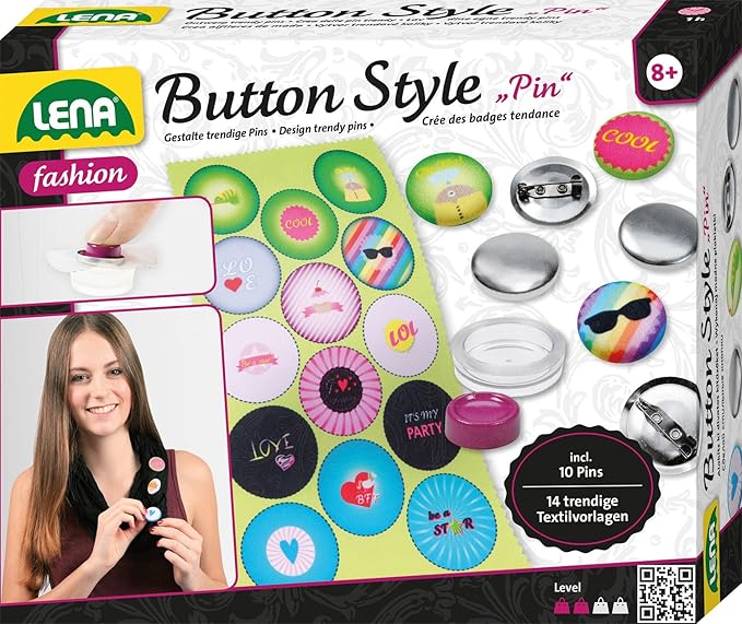 BUTTONS SELBER MACHEN OHNE BUTTONMASCHINE - Einfach mal handgemacht. Ersparen Sie sich die Anschaffung einer teuren Buttonmaschine. Sie nehmen Ober- und Unterteil des Buttons, legen den Papierkreis ein und drücken die Teile mit der Hand zusammen. Einfach und unkompliziert - das war von Anfang an unser Ziel mit den Ruck Zuck Buttons zum selber machen. BUTTONS WIEDERVERWENDBAR - Robust und wiederverschließbar. Die Buttonteile halten schön fest zusammen und können wieder geöffnet werden. Wenn Sie den Button bereits geschlossen haben und das Motiv noch mal wechseln möchten, einfach mit einem flachen Gegenstand (z.B mit einem Schraubenzieher) das Oberteil vom Unterteil trennen. Das geht leichter, wenn der Button zuvor nicht zu stark zusammengepresst wurde. BUTTONS SELBST GESTALTEN - Basteln Sie Ihre Buttons spielend einfach mit eigenen Texten, Fotos und Grafiken. Natürlich können Sie dafür eine eigene Design Vorlage mit einem Grafikprogramm erstellen. Aber um Ihnen die Arbeit zu erleichtern, verwenden Sie doch einfach den kostenlosen Online Button Designer von mia mai Buttons. BUTTONPAPIER BEDRUCKEN - Eigene Buttonmotive einfach auf das mitgelieferte A4-Buttonpapier mit vorgestanzten Kreisen ausdrucken. Anschliessend die Papierkreise entlang der Randperforation mit Daumen und Zeigefinger herauslösen und in die Ansteckbuttons einlegen! Und wenn Sie ganz auf PC und Drucker verzichten möchten, lässt sich das Buttonpapier selbstverständlich mit der Hand bemalen. IHRE ZUFRIEDENHEIT IST UNS WICHTIG - Bei dem Kauf von Ruck Zuck Buttons zum selber machen, soll nicht nur die Buttonproduktion einfach und schnell von der Hand gehen. Wir sind uns sicher, Sie werden die Ruck Zuck Buttons lieben, aber wir wissen auch, daß nicht alle Geschmäcker gleich sind. Wenn Sie nicht glücklich mit den Buttons sind, melden Sie sich, wir finden eine Lösung. › Weitere Produktdetails
