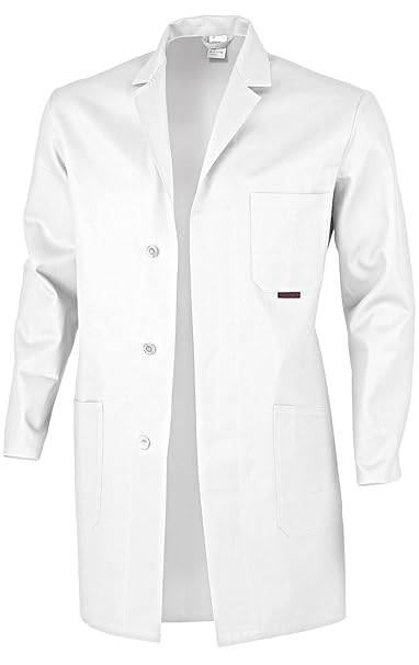 Laborkittel für Damen & Herren, Kittel Medizin weiß, 100% Baumwolle mit Druckknöpfen, Perfekt für Arbeit und Studium, aus eig