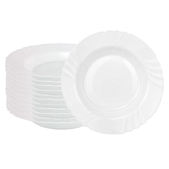 Lieferumfang: 6 Teller, flach - 24 cm und 6 Teller, tief, 22,5 cm Material: Opalglas spülmaschinenfest - mikrowellengeeignet - kantenstabil