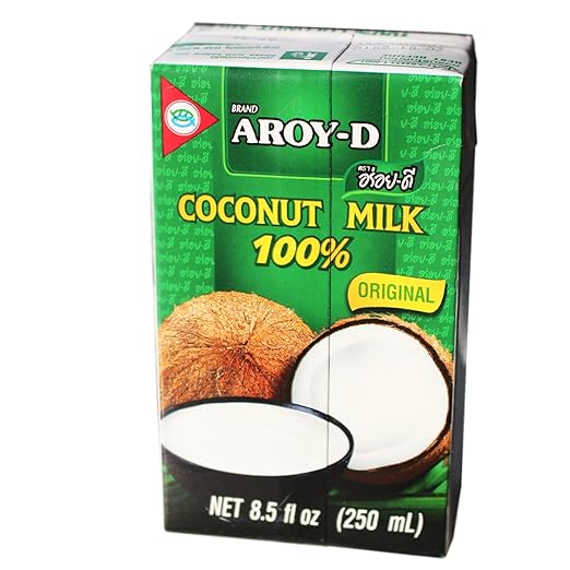 AROY-D Kokosmilch Hinweis: Sollte die Kokosnussmilch eine feste Konsistenz haben, bitte im heißen Wasserbad für 5-10 Minuten erwärmen, dabei gelegentlich umrühren. Die Qualität wird dadurch nicht beeinflusst. Zutaten: Kokosnussextrakt 70%, Wasser, Emulgator: E435. Inhalt: 250ml Herkunft: Vietnam › Weitere Produktdetails