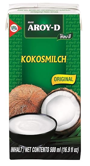 Milch aus dem puren Extrakt der Kokosnuss Reich an Vitaminen, Mineralien und Spurenelementen kalorienarmer Sahneersatz - Ideal zum Kochen, Backen uns für Desserts Von Natur aus kein Cholesterin und keine Laktose (Milchzucker) Lieferumfang: 8 x 500 ml Aroy-D Kokosnussmilch Fettgehalt ca. 17% Vorteilspackung Rezeptur: Kokosnussextrakt 70%, Wasser, Emulgator: (E435) › Weitere Produktdetails