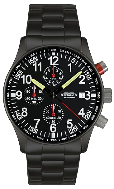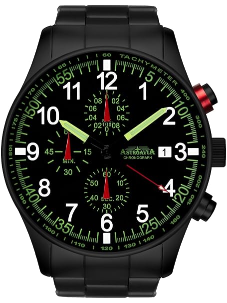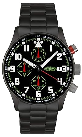 Astroavia Herren-Armbanduhr Chronograph Quarz mit Edelstahl Armband FN37BS Militär