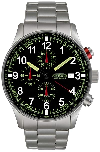 Astroavia Herren-Armbanduhr Chronograph Quarz mit Edelstahl Armband V8S