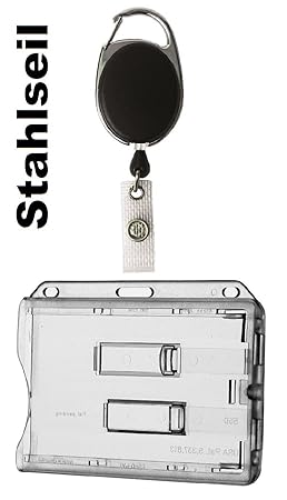 Set bestehend aus einem Kartenhalter und einem Kartenjojo Ausführung Kartenhalter: Querformat transparent glasklar; zum Schutz vor Kratzern in Folie eingeschweißt Ausführung Kartenjojo: Schwarz (Vollton) mit Karabinerhaken und zusätzlichem Gürtelclip, sodass er an der Kleidung eine Vielzahl an Befestigungsmöglichkeiten bietet Die abgebildete Amazon-Guthabenkarte dient nur zur besseren Darstellung und ist nicht Gegenstand dieses Angebotes › Weitere Produktdetails