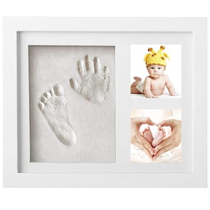 ? Die Baby Handabdruck und Fußabdruck hält eine 12 x 16cm(4.72 x 6.30 Zoll) Impressionen & zwei 7 x 7 cm(2.75 x 2.75 Zoll) Foto.