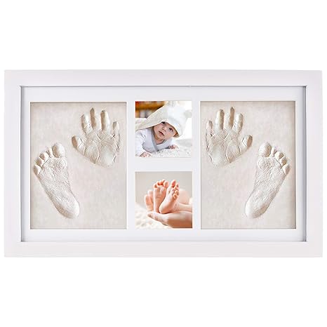 ?? Zusammensetzung: Die Baby Handabdruck und Fußabdruck hält eine 12 x 16cm(4.72 x 6.30 Zoll) Impressionen & zwei 7 x 7 cm(2.75 x 2.75 Zoll) Foto.