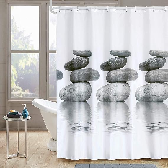 Premium PEVA Material: aus hochwertigem Material, ungiftig, sicher und langlebig, verdicken Vorhang macht es vertikal gut Wasserdicht und kein Mehltau: Glattes PEVA Material, halb-tansparent, total 100% wasserdichter und atmungsaktiver Vorhang 12 Stück langlebige Duschvorhangringe: Upgrade Duschvorhang Ringe, lange Lebensdauer, kein Rost, kein Bruch, mit langlebigen Edelstahl Kreisen für Ringe 3D geprägter Kiesel entworfen: Premium Technologie und Design, innovativ, sieht elegant aus Größe und Paket: 180x180cm, 12 Stück Duschvorhang Ringe