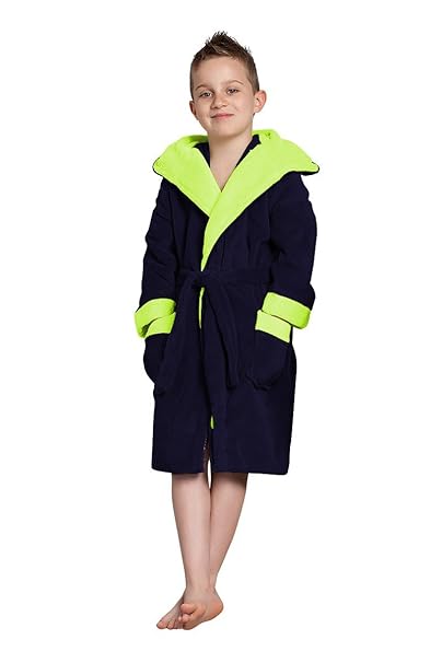 S (86-98)/M (98-110)/ L (110-122) Hautfreundliche leichte Mikrofaser fuer beste Atmungsaktivitaet und pudelwohl. Modellnummer: ROBE-009 Mit Kapuze, Bindeguertel und zwei aufgesetzte Taschen. hochwertige Verarbeitung, Pflegehinweis: Handwaesche 30 Grad Der bequeme Bademantel aus 100% Polyester, Mikrofaser ist sowohl fuer Maedchen als auch fuer Jungen geeignet.