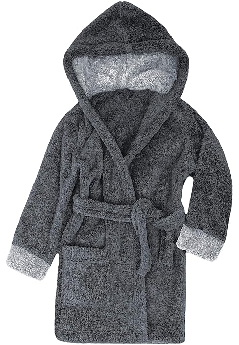 PERFEKTES GESCHENK: Unser Coral-Fleece-Bademantel für Ihre Kids mit Kapuze, Bindegürtel sowie zwei großen Eingriffstaschen ist ein ideales Geschenk für Ihren Sohn oder Ihre Tocher.