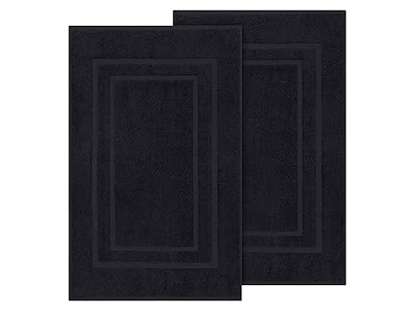AmazonBasics Badvorleger mit rechteckiger Bordüre, Schwarz, 100% Baumwolle (1.200 g/m²), 51 x 79 cm