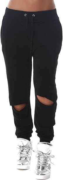 Moda Italy trendy Damen Sweatpants Baggy Boyfriend Freizeithose Jogginghose Baumwolle Sporthose Loose fit