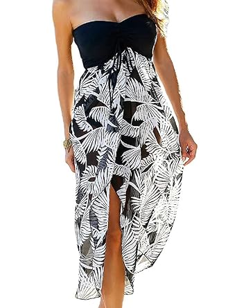 Damen Bustierkleid Strandkleid Chiffonkleid Sommerkleider Kurzes Kleid mit Blumen Print