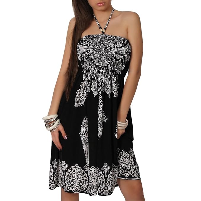 Diva-Jeans Damen Sommer Aztec Bandeau Bunt Tuch Kleid Tuchkleid Strandkleid Neckholder H112