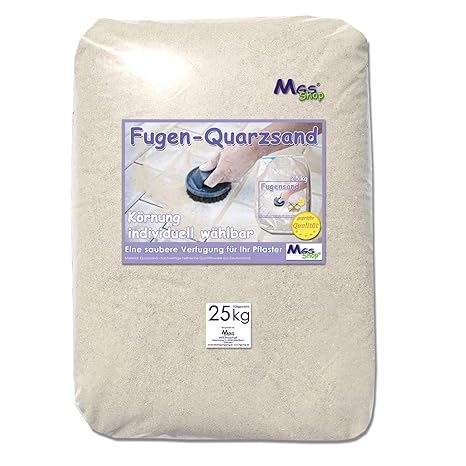 absolut unkrauthemmend, da organische Bestandteile bis zu einer Größe von 0,063 mm ausgewaschen wurden!!!! QSWNB Fugensand für Fugen von 0,5mm bis 8mm: Körnung 0,3-0,8mm 25 kg Beutel - Fugensand / Quarzsand entspricht EN 12904 und DIN 4924 Made in Germany / Quarzsandwerk Neubrandenburg GmbH Sicher verpackt im Hartkarton - Beutel mit praktischer blauer Ausschüttlippe › Weitere Produktdetails