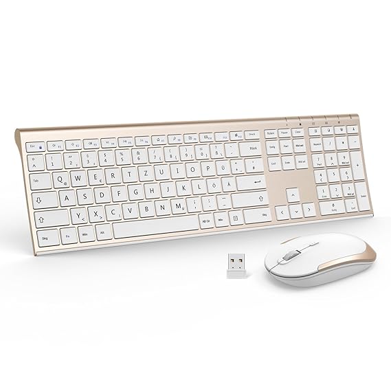 Wireless Tastatur mit Maus Combo, Jelly Comb 2,4Ghz Ultra Dünne Drahtlose Tastatur und Maus Wiederaufladbar Tastatur(QWERTZ,