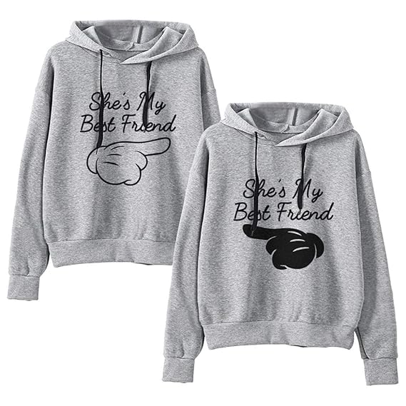 ?MATERIAL: Baumwolle und Polyester. Sweatshirts für zwei best friends. Es ist glatt zu berühren und sicher zu Haut. Keine Hautallergie ,Keine Fading oder Schrumpfung nach Tests.