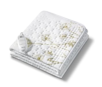 Hygiene und Frische: die bis 30° C waschbare Heizdecke für Ihr Bett hat eine angenehme Baumwoll-Oberseite, die integrierte PURE Silberausrüstung wirkt antibakteriell und geruchsmindernd Das elektrische Wärmeunterbett besitzt einzeln einstellbare Temperaturzonen für Körper und Füße mit je 9 Temperaturstufen, mit der Anti-Allergie-Temperaturstufe können Sie Milben bekämpfen Die Heizmatte fürs Bett ist mit dem Beurer Sicherheitssystem (BSS) ausgestattet und verfügt über eine Rückschaltautomatik, die nach drei Stunden von der Temperaturstufe 7, 8 oder 9 auf 6 herunterschaltet Komfortables Wärmegerät: auf dem abnehmbaren Schalter mit beleuchtetem LCD-Display können Sie die Zeit in Stunden-Schritten individuell einstellen. Zudem wird auf dem Schalter der aktuelle Verbrauch in kWh angezeigt (EcoControl) Diese Schnellheizung mit einer Vorwärmzeit von ca. 15 Minuten eignet sich mit einer Größe von 150 x 80 cm für Matratzen mit einem Maß von 90 x 200 cm und 100 x 200 cm