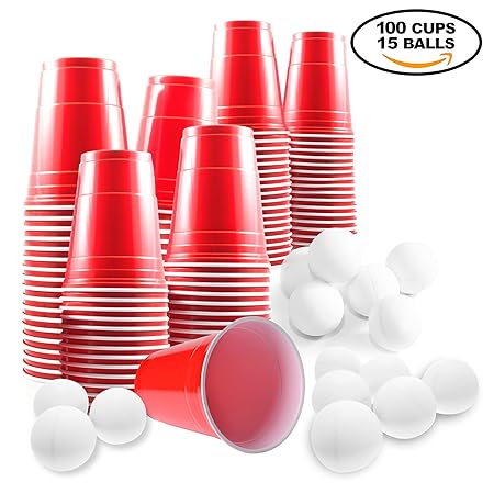 ? ORIGINALE AMERICANISCHE BEER PONG BECHER INKLUSIVE BÄLLE: Man kennt sie aus unzähligen amerikanischen Partyfilmen - die Party cups sind Bestanteil jeder guten Party und machen all deine Feiern zu einem vollen Erfolg. Sie werden damit ein erfolgreicher Party Pionier sein. ? FÜR LEBENSMITTELKONTAKT ZERTIFIZIERT: Die Trinkbecher sind auf den Gebrauch mit Lebensmitteln geprüft und können somit ohne Bedenken genutzt werden.Die robusten Partybecher eignen sich nicht nur für Bier, sondern auch für Saft, Softdrinks und Wasser, Longdrinks und verschiedenste weitere Getränke aller Art, zum Beispiel auch als Kaffeebecher oder Schnapsgläser verwendbar; jeder Becher kommt mit einem Fassungsvermögen von komfortablen 473 ml bzw. 16 oz - perfekt für ausreichend Flüssigkeit, gro ? STABILER ALS HERKOEMMLICHE PLASTIKER BECHER: Die Trinkbecher sind durch den verstärkten Becherrand und -boden stabiler als herkömmliche Transparent- oder Pappbecher und können beliebig oft gespült werden - so bleiben die Becher besonders langlebig und werden nicht nur auf einer einzigen Fete zum optimalen Party Zubehör, sondern auf vielen weiteren. ? FLEXIBLE REGELN UND UNTERSCHIEDLICHE ZWECKE: Das Beer Pong Becher ist seit Jahren viel populär in USA und es ist nun auch sehr bekannt in Europa. Im Internet kann man viele Spiel Vides und Spiel Regeln finden. Natürlich könnten Sie auch selbt ausdenken. ? 100% DAS BESTE SERVICE Wir legen viel Wert auf das Kunden Kaufen Erlebnis. Wir versprechen Ihnen, innenhalb von 12 Stunden koennten Sie eine Rueckmeldung von uns bekommen, wenn Sie irgendeine Frage haetten. Und wir werden Ihnen bestimmt eine zufriedene Loesung anbieten.