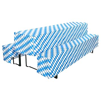 Das 3-teilige Set besteht aus einer Biertisch-Tischdecke und zwei Bierbank-Auflagen, die mit jeweils zwei elastischen Bändern befestigt werden. Es passt hervorragend bei allen handelsüblichen Bierzelt-Garnituren mit 50cm sowie 70cm Breite und verschafft Ihrer Feier eine ganz besondere Atmosphäre.