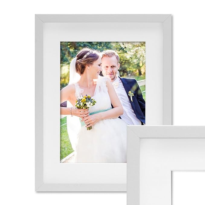 Hama Bilderrahmen 30 x 40 cm, mit Papier-Passepartout 20 x 27 cm, hochwertiges Glas, Kunststoff Rahmen, zum Aufhängen, weiß