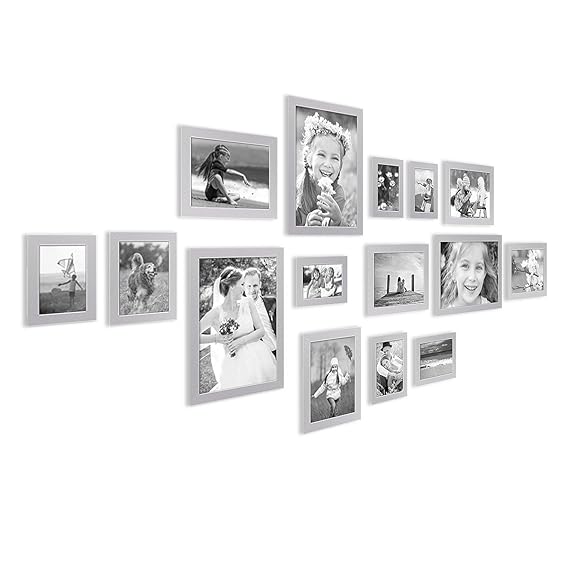 Muzilife Bilderrahmen Collagen 11er mit Passepartout Modern Bilderwand Natur Home Deko 8pcs 13x18cm + 3pcs 20x25cm (Grau)