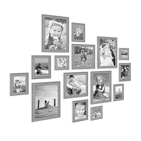 9 solide MASSIVHOLZ-BILDERRAHMEN zum AUFHÄNGEN Gesamtgröße ca. 80x80 cm Je 2 mal 10x15 13x18 21x30 cm und 3 mal 15x20 cm (Innenmaße der Rahmen). Inklusive PASSEPARTOUTS mit den Ausschnitten 7x9 9x13 10x15 und 15x20 cm Rahmenleiste mit 2 8 cm Tiefe im schlichten MODERNEN DESIGN Rahmenfarbe Grau Holzstruktur sichtbar Breite der Leiste: 1,7 cm MIT GLASSCHEIBE und stabiler Rückwand EINFACHES ANBRINGEN dank mitgelieferten Bildernägeln, Papier-Schablonen und Mini-Wasserwaage. Inklusive Anleitung zur Gestaltung einer Bilderwand Gut geeignet für: Schwarz-Weiss-Bilder Urlaubsbilder Portrait Hochzeitsfoto Fotogalerie Aquarell Kunstdruck Postkarte Fotocollage Familienfoto Geburtstagsgeschenk Babyfoto