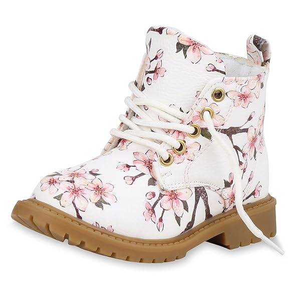 topschuhe24 1476 Damen Stiefeletten Worker Biker Boots Blume