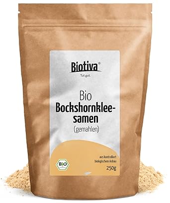 BOCKSHORNKLEE-SAMEN: Diese gemahlenen Bockshornklee-Samen sind sehr aromatisch, dabei leicht bitter und ein echtes 'MUSS? bei einem Curry-Gewürz. Die meisten Curry-Gewürzmischungen enthalten gemahlenen Bockshornklee. VERWENDUNG: Gerade in der asiatischen Küche werden Bockshornkleesamen gerne verwendet und finden sich in vielen alten Rezepten und Gerichten. ? BIO QUALITÄT AUS DEUTSCHLAND: Abfüllung erfolgt in unserer Manufaktur. Die Basis sind 30 Jahre Bio Erfahrung. Für maximale Sicherheit und Verlässlichkeit (Öko-Kontrollstelle DE-ÖKO-005) WEHENANREGENDE WIRKUNG. Bitte beachten: Bockshornkleesamen werden gerne von stillenden Müttern verwendet. Bitte der Schwangerschaft und in der Stillzeit nur nach Rücksprache mit Ihrer Hebamme oder Arzt einnehmen. ? ZUFRIEDENHEITSGARANTIE: Sie sollen 100% zufrieden sein. Sollte das dennoch einmal nicht klappen, kontaktieren Sie uns: Sie können innerhalb des 1. Jahres nach Kauf dieses Produkt zurückgeben. Sie erhalten dann Ihr Geld umgehend zurück! › Weitere Produktdetails