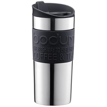 Bodums typisches French Press System ist mit der Bodum Travel Mug kombiniert, damit Sie auch unterwegs einen genussvollen Kaffee zubereiten und genießen können Das Becher-Innere besteht aus Edelstahl, damit der Kaffee noch länger warm bleibt Kann auch für andere Getränke, heiß oder kalt, genutzt werden, dank des separat mitgelieferten Trinkdeckels. Hitzeresistenter Silikonstreifen für einen festen Griff und sichere Handhabung Rutschfester gummierter Boden für einen sicheren Stand