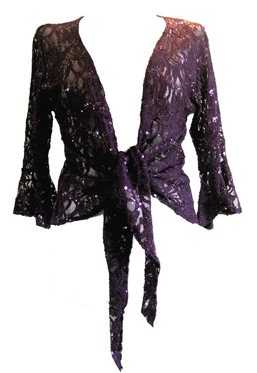 Neu Damen Übergröße Spitze Krawatte Bolero Top Pailletten Ausgestellt 3/4 Ärmel Gerafft 12-26