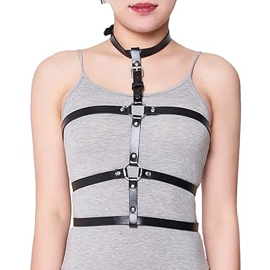 Greenpinecone Damen Harness Geschirr Kunstleder Body Unterbrust Korsett Halsband, Fetisch Ouvert Offene Brust Körperharness B